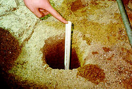 as displayed in the picture. A hole is dug with a posthole digger