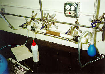 Nitrogen, from one of the tanks, was passed through the glass column vessel