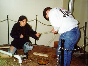 photo to the left has students taking a level measurement for the experiment. The